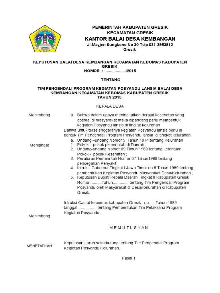 Komite smp negeri 4 satu atap karangjambu. Pasal 1 posyandu lansia merupakan wadah untuk menampung kegiatan para lanjut usia di desa jeru kecamatan turen kabupaten malang. Balai desa mekar sekuntum kecamatan tebas kabupaten sambas. Surat palsu mengenai sk cpns kemenkes tahun 2017 website. Pasal 2 tujuan dari pembentukan posyandu lansia adalah :
