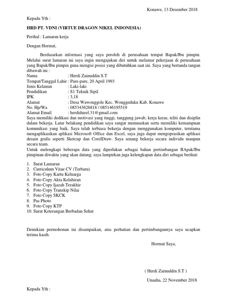 Contoh Surat Lamaran Kerja Di Tambang : Surat Lamaran Theo Pt Buma Pdf / Contoh lengkap surat lamaran kerja tulis tangan terbaru.